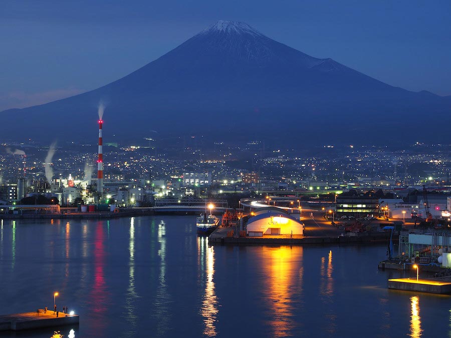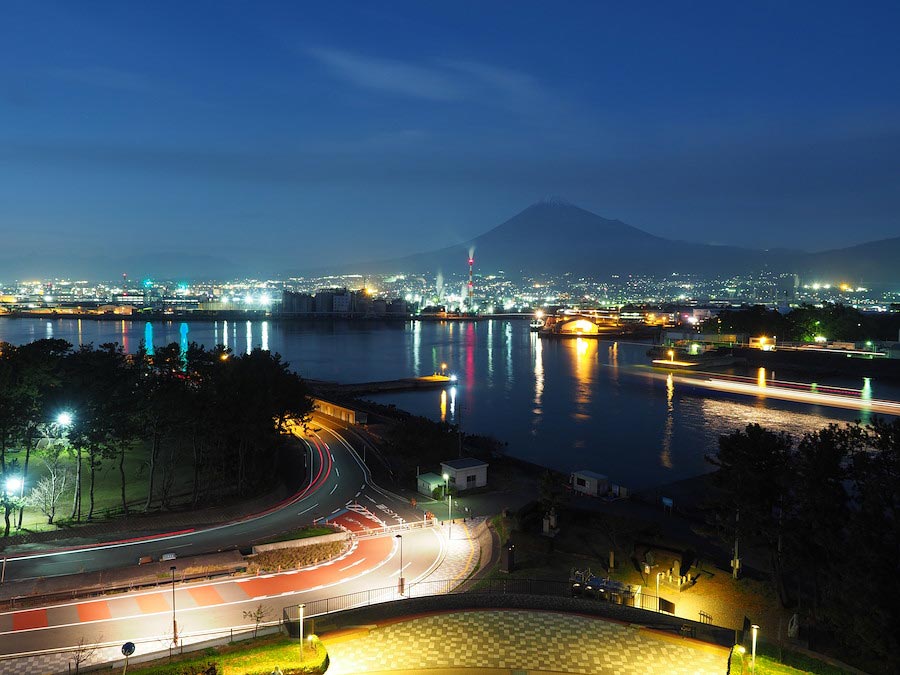 富士市の夜景を望遠端で長秒撮影した作例。両肘を柵の上にのせてシャッターを切っているが、シャッタースピード5秒でも手ぶれのない写真が撮れたのは驚きだった。中央部だけでなく周辺まで手ぶれを抑えた画質が得られたのはすごい。E-M1 Mark IIのボディー内5軸手ぶれ補正は回転ぶれに対応しており、周辺部まで手ぶれのない写真を撮ることができる。