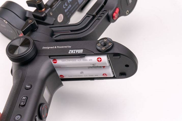 バッテリーは「Crane 2」などのZhiyun製ジンバルと共用できます。なお、写真では似て見えるものの、サイズが違うため市販品の単3形乾電池は使用できません