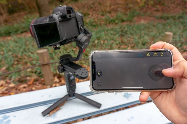 iPhoneやAndroid搭載スマートフォンに対応する専用アプリ「Zhiyun Play」からリモートで「Weebill Lab」を操作可能です。また、パナソニック「GH5」やソニー「α7」シリーズなどのミラーレス一眼カメラは、USBケーブルでジンバルと接続することで、アプリから撮影画面をプレビューしたり、カメラ設定を変更したりできます