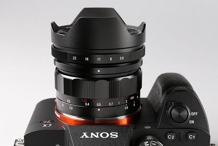 2016年5月発売のHELIAR-HYPER WIDE 10mm F5.6 Aspherical(カメラボディは「α7R III」)。コシナ製のレンズは、厳密な品質管理のもと、レンズの研磨からコーティング、組み立てまで一貫して自社工場で生産されており、非常に高品位な仕上がりとなっている