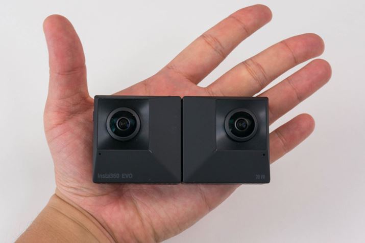 カメラを開くと180°の3Dカメラ、閉じると360°カメラになるという「Insta360 EVO」。その変幻自在の姿をまずは写真でチェック!