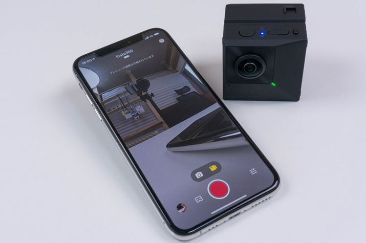 撮影手順は、まずカメラの電源をオンにし、次にスマートフォンのアプリ「Insta360 EVO」(製品と同名)を起動しペアリングするだけ。これで、スマートフォンの画面でプレビューを見ながら録画のオン/オフやカメラのシャッターが操作できるようになります。