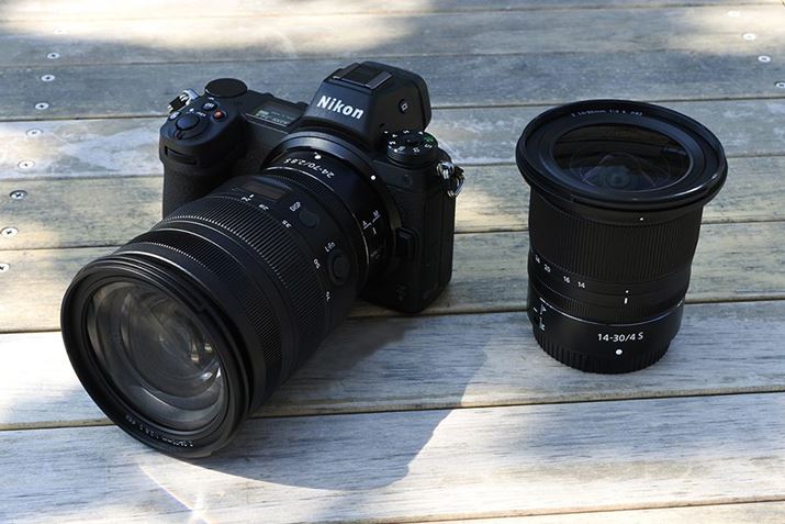 フルサイズミラーレス「Z 6」に装着しているのがNIKKOR Z 24-70mm f/2.8 S。右がNIKKOR Z 14-30mm f/4 S。いずれも2019年4月の発売予定