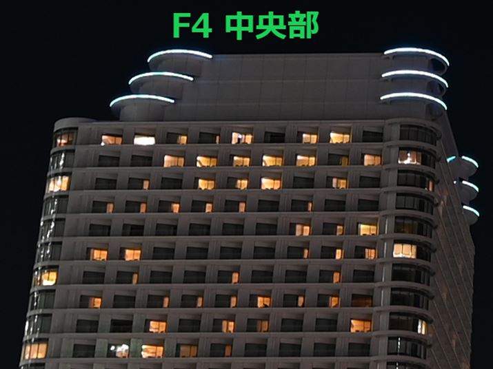 開放での点光源の再現性をチェックするために撮影した1枚。ピントは10mくらいの距離で合わせている。以下に掲載する切り出し画像をご覧いただきたいが、周辺で倍率色収差やコマ収差はほとんど見られない。