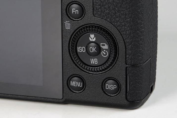 新設されたコントロールダイヤルの操作感はもうひとつ。お借りした実機では、コントロールダイヤルを左に回すと十字キーのプリントも左に傾くようになっていた。この画像でも少し左に傾いていることがわかるはずだ