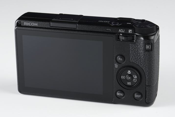 操作性は、背面のAFファンクション切り替えレバー/AFボタンと露出補正の上下ボタンがなくなったのが従来モデルからの大きな変化点で、よりシンプルな操作になった。露出補正はリコー伝統の操作系であるADJ.レバー(左右/押し込み操作が可能なレバー)を左右に倒す操作で行うようになったが、従来と比べると、ホールドした状態からの親指の動きが少なくなった分、慣れてくるとこちらのほうがスムーズに行えると思う。なお、露出補正は背面のコントロールダイヤルや前ダイヤルに割り当てることはできず、ADJ.レバーのみでの操作となっている。