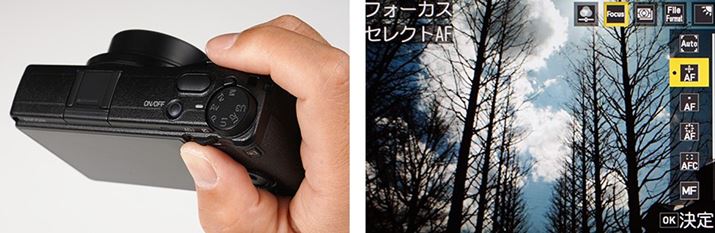 GR IIIはタッチ操作でAF枠を移動できる。タッチパネルの感度がよく、ストレスなく操作することができる。メニュー画面もタッチで操作することが可能だ