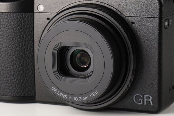 焦点距離18.3mm(35mm判換算28mm相当の画角)で開放F2.8のスペックを継承した、新開発のGRレンズ。高屈折率低分散ガラス、高精度ガラスモールド非球面レンズを用いた4群6枚の薄型光学系を採用している。リングキャップを外すことでレンズアダプター「GA-1」やワイドコンバージョンレンズ「GW-4」を取り付けられるのは従来と同様