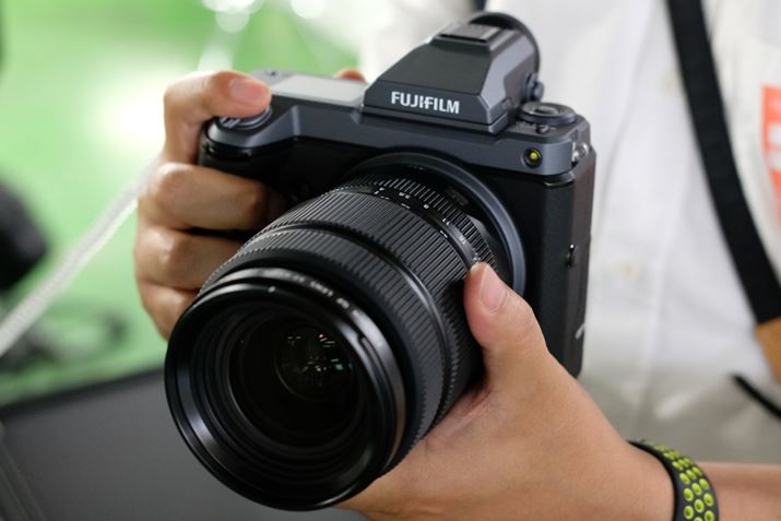 なお、富士フイルムは43.8(横)×32.9(縦)mmのサイズの撮像素子を、35mm判より大きいことからこれまで中判サイズとしてきたが、GFX100ではラージフォーマットにあらためている。