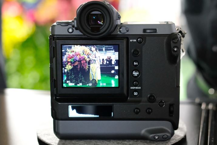 また、上面左側には静止画/動画/マルチショットの3つのモードを切り替えられるドライブダイヤルを配置。それぞれのモードに露出やホワイトバランス、フィルムシミュレーションなどに関する設定の記憶できるので、ワンアクションで最適な設定値を呼び出せるのが便利だ。なお、富士フイルムのハイエンドモデルといえば上面にシャッタースピードダイヤルや露出補正ダイヤル、感度ダイヤルを搭載するのが特徴だが、今回は静止画だけでなく動画のプロユースにも最適化するため、このような操作性にしたとのこと。