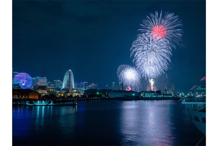 今回はみなとみらいの夜景と花火を入れたかったので引きで撮りましたが、鹿野さんにお褒めの言葉をいただけてうれしかったです