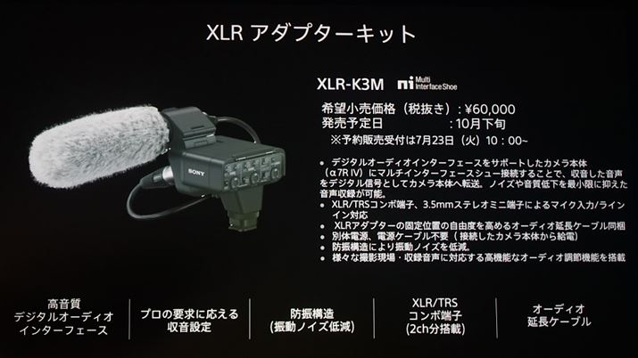既存のXLRマイク製品をMIシュー搭載カメラに組み合わせることが可能なXLRアダプターキット「XLR-K3M」も用意される