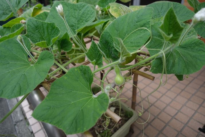 最短撮影距離17cmで小さなひょうたんを接写。表面の白くて細かい産毛に素早くAFが合焦した。緑の発色と植物のやわらかい質感描写にすぐれている