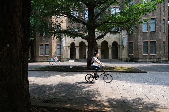 小径の木を入れて撮影中に自転車が横切る。すかさずシャッターを切ったが1/250秒でも被写体がブレていた。それが静止した画面に動きを加えてくれた