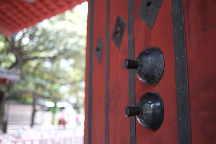 本郷三丁目、東大の赤門に近づいた。背景は明るくボカして、面白い形の金属部品を主役にした