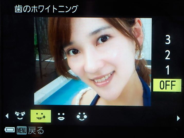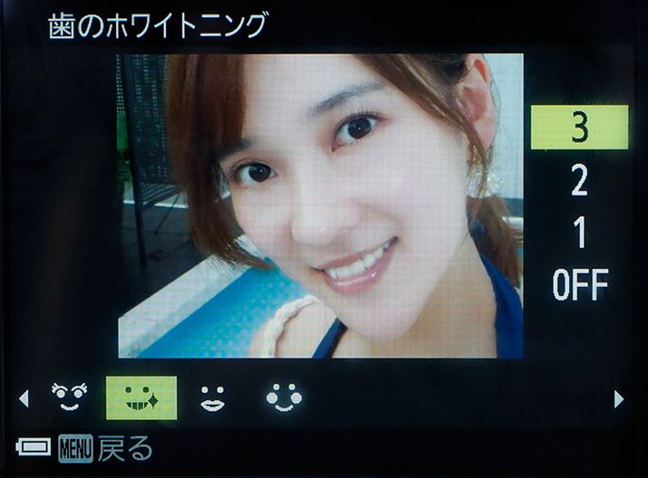 これまでも本連載では何度かデジカメのビューティー加工機能は紹介してきましたが、歯の白さまで行き届いた機能がついているカメラはこれだけかもしれません。
