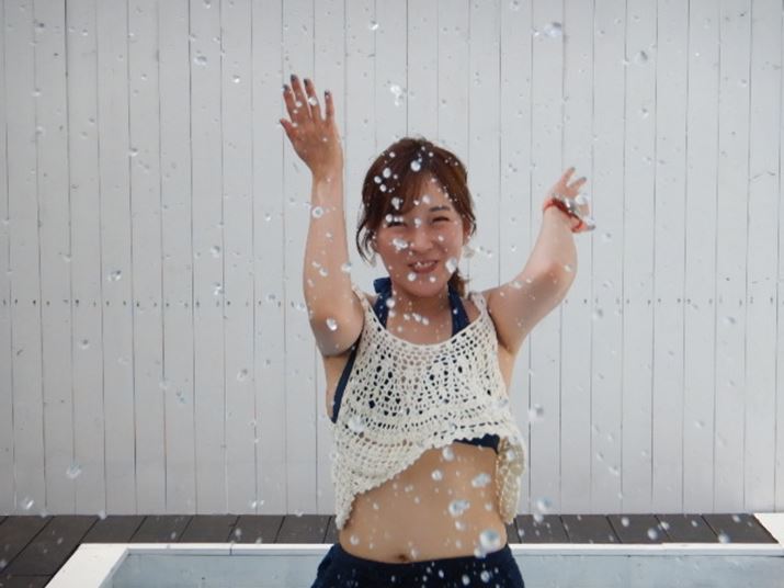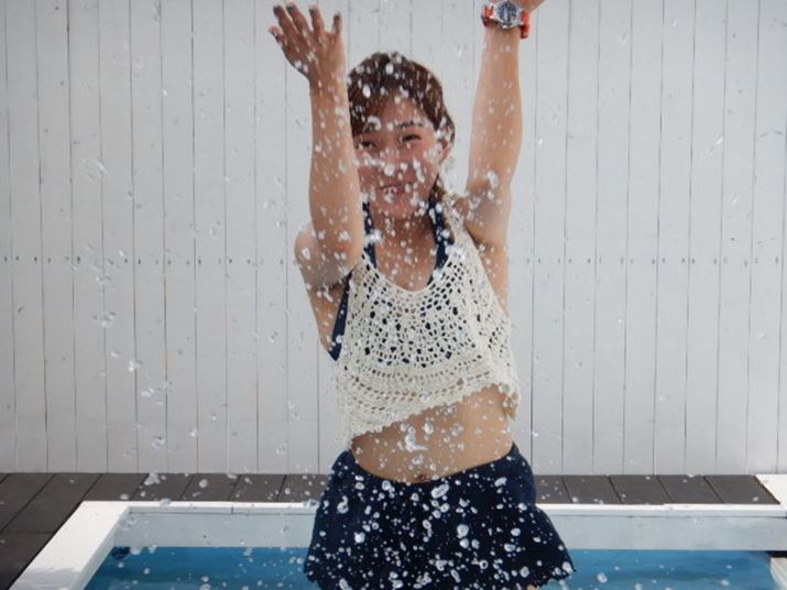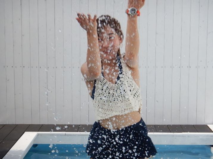 前回に引き続き、プールサイドから水着でお送りしていきますよ!