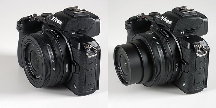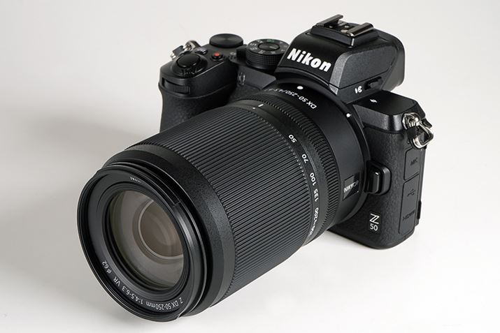 NIKKOR Z DX 50-250mm f/4.5-6.3 VRをZ 50に装着したイメージ。こちらもNIKKOR Z DX 16-50mm f/3.5-6.3 VRと同様、沈胴式レンズとなっている。サイズは約74(最大径)×110(沈胴時の長さ)mmで重量は約405g。レンズ構成はEDレンズ1枚を含む12群16枚。最短撮影距離は焦点距離によって異なり、焦点距離50mm時で0.5m、250mm時で1.0m。手ブレ補正機構の効果はNIKKORレンズとして現時点で最高となる5段分を実現している