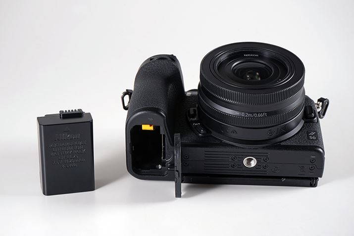 従来と互換性がないのは残念だが、対応バッテリーは新型の「EN-EL25」になった。撮影可能コマ数はファインダー使用時で約280枚、モニター使用時で約320枚。記録メディアはSDメモリーカード(UHS-I対応)となっている