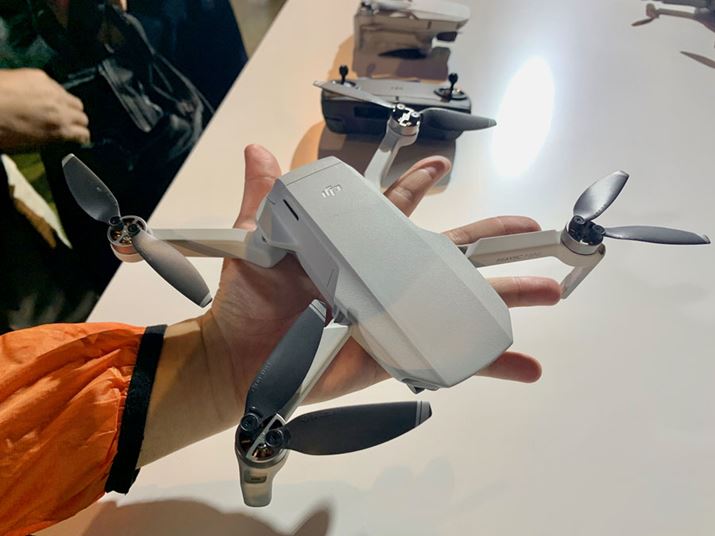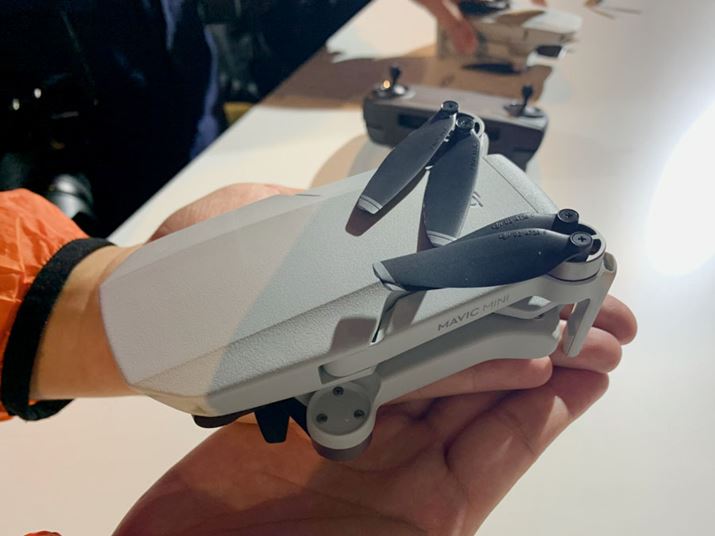 「Mavic Mini」のお披露目の瞬間。海外モデルが249gなのに対して、日本モデルは199g。実物を見るとその小ささに改めて驚かされます