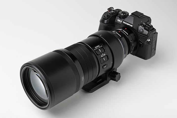OM-D E-M1 Mark IIにM.ZUIKO DIGITAL ED 300mm F4 PROとMC-20を装着したイメージ。パッと見ではテレコンを付けていないような印象を受ける、一体感のあるデザインだ