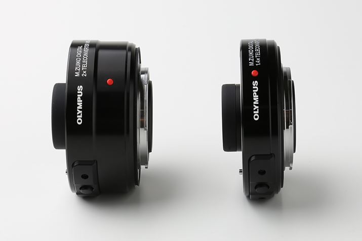 オリンパスはテレコンバーターとしてMC-20(左)のほか、焦点距離を1.4倍に伸ばす「MC-14」(右)も用意している。倍率が低い分、MC-14はMC-20よりもコンパクトで全長14.7mm(レンズ部、マウント部分突起含まず)/重量105gとなっている