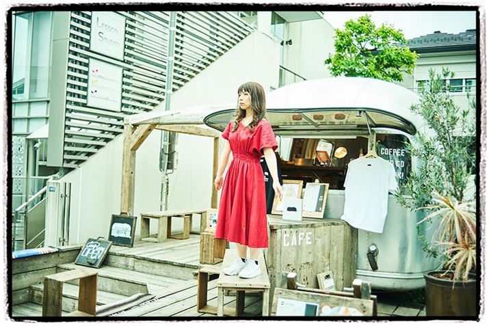 ロケ場所は、アメリカンレトロなキャンピングカーで営業しているおしゃれカフェ。リアの窓外から内部を撮影。外の景色の反射をあえて写りこませ、不思議世界を醸し出す
