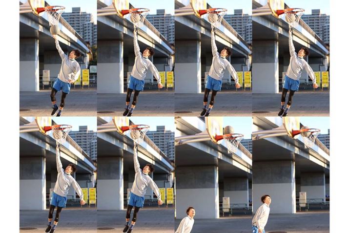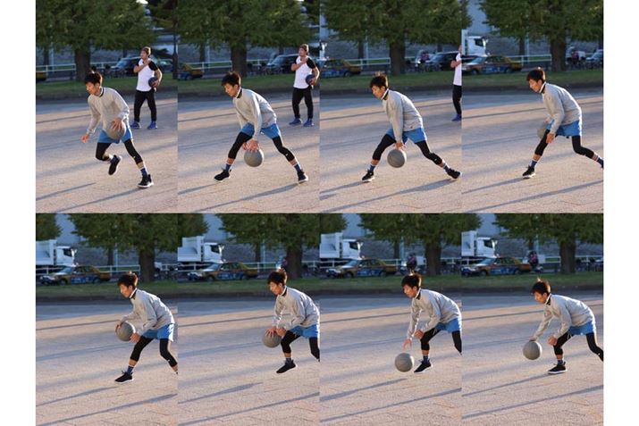 激しい動きのバスケットゴールの練習を撮影。プロ用機EOS-1D X Mark IIでも100%、ピントの合った写真を撮ることは難しい条件だが10コマ/秒という高速で歩留まりのよい撮影が楽しめた