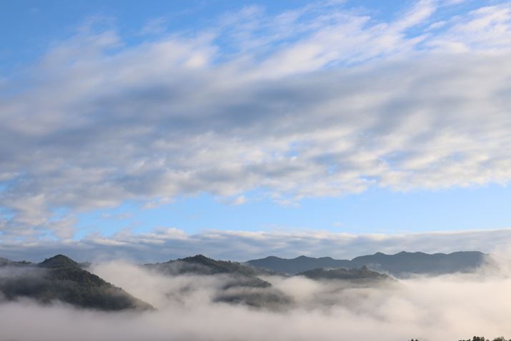 霧の出た快晴の朝の空を撮影。霧の中の部分など、コントラストが低い部分はもやっとした描写になりがちなものだが鮮明に捉え、空の青さも美しい