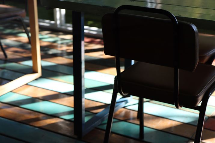 日差しの差し込むテラス席。影の部分でもしっかり再現されている椅子や机の質感描写に感心