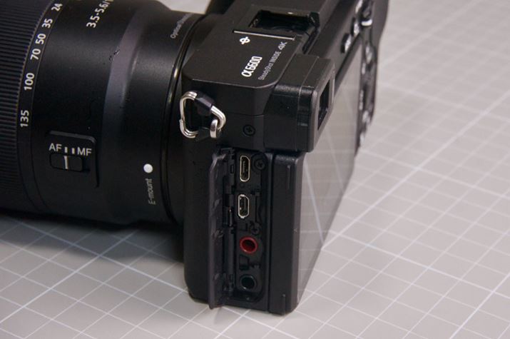 側面にはmicroUSBポート、microHDMIポート、マイクポート、イヤホンジャックを備えています。2019年の後半に発売されたカメラであることを考えると、USB Type-Cであってほしかったと思うのが正直なところ