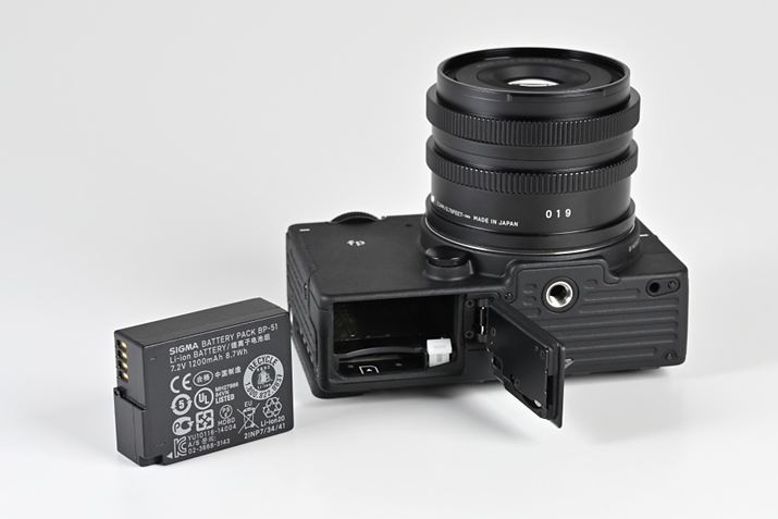 対応バッテリーは、コンパクトデジカメ「dp Quattro」シリーズと同じ「BP-51」。電源オフ時にUSB経由での本体内充電に対応する(給電は不可)。撮影可能枚数は約280枚。バッテリーの持続性にすぐれているわけではないので、長時間の撮影なら予備バッテリーは必須だ