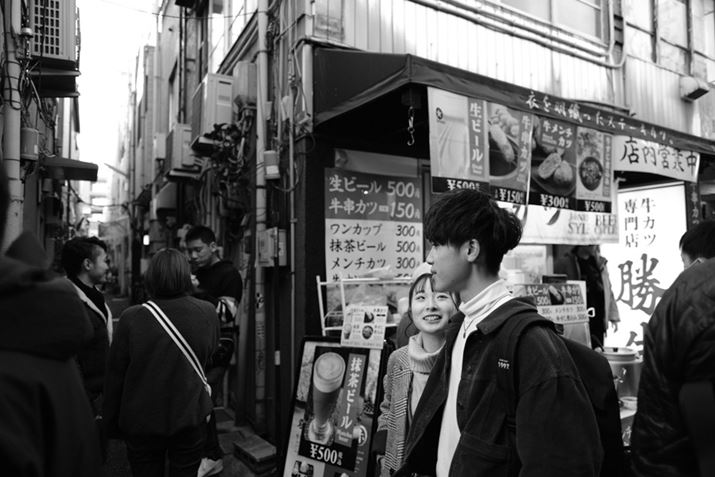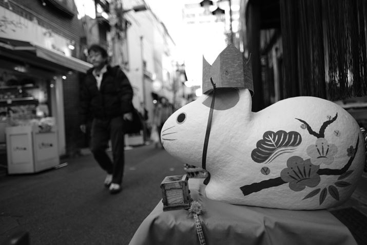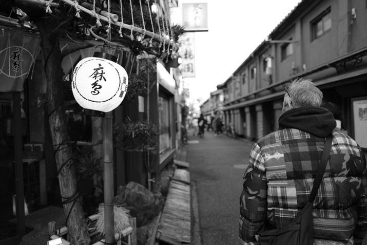今回取り上げる「X-Pro3」は、この思想をさらに押し進め、背面の液晶モニターを閉じた状態がデフォルト。下に開いて確認するというHidden LCDを採用した。OVFをのぞきながらシャッターを切る。撮影後のプレビューOFFで、そのまま次の被写体を探す。これによってデジタルカメラならではのわずらわしさを減らしている。つまり、OVFをのぞきながら撮影して、撮影後も液晶モニターを見ない。さらにAFもOFFにして被写界深度を使ったパンフォーカスを使い、連写モードにすれば、スナップ最強設定となる。今回はフィルムシミュレーションの中から「ACROS」をチョイスし、このスナップ最強設定で年末の浅草を写真家、小平尚典氏とともに散策。交換レンズは広角単焦点を中心に3本で撮影した。