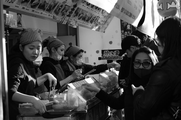 活気あふれるまんじゅう店。絞り開放からシャープな描写が得られた