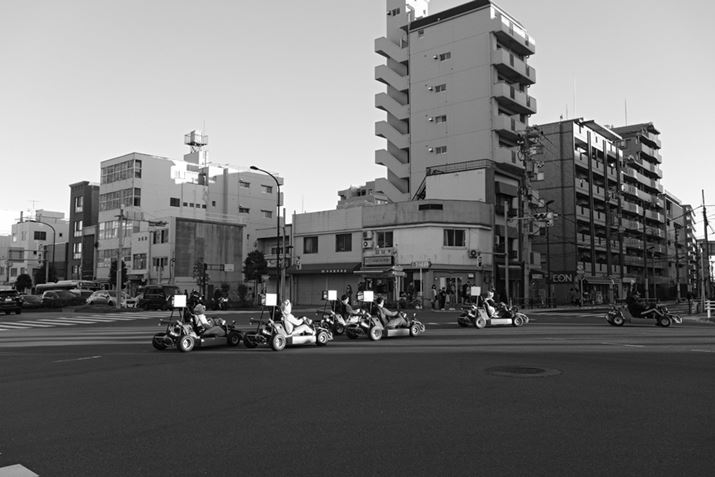 午後の陽射しを浴びて走るゴーカートの集団。浅草の新たな風物詩になれるのか