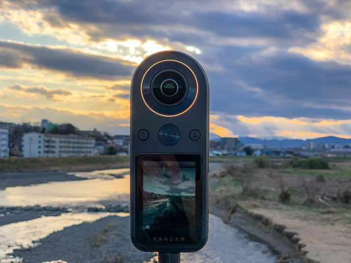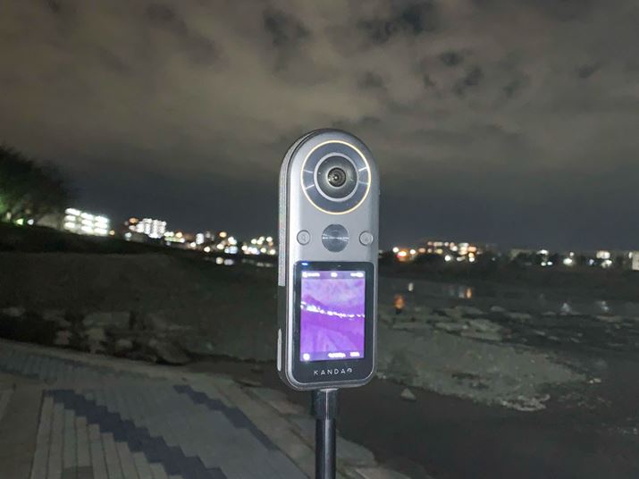 デジタル一眼カメラなどと比べてセンサーサイズが小さい360°カメラは、一般的に暗所での撮影が苦手です。特に、手持ちで歩くなど移動しながらの撮影は、映像がブルンと乱れるゼリーエフェクトというノイズが出ることも少なくありません。そこで、今回は日没後の河原に「QooCam 8K」を持ち出して、暗所撮影の性能テストを行いました。