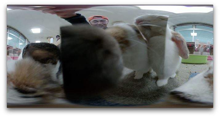 室内でウサギを撮影。比較的明暗の差が少なく、動きが激しくない場面ではステッチ(つなぎ目)の乱れも少ない映像になっています