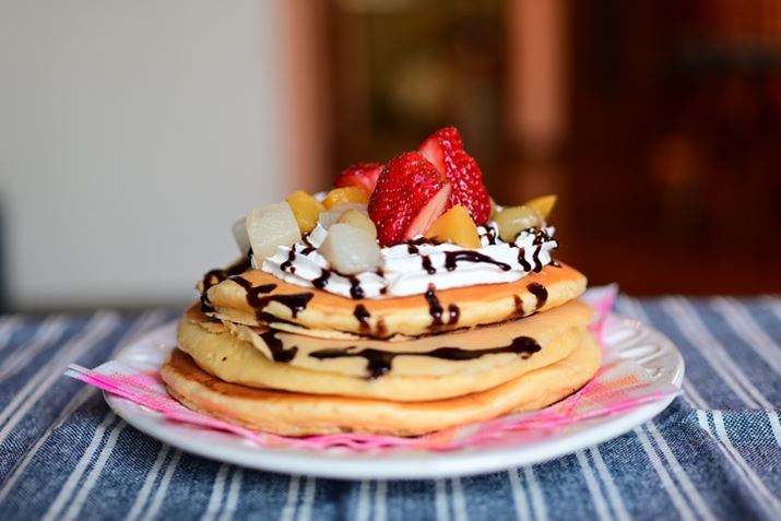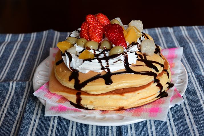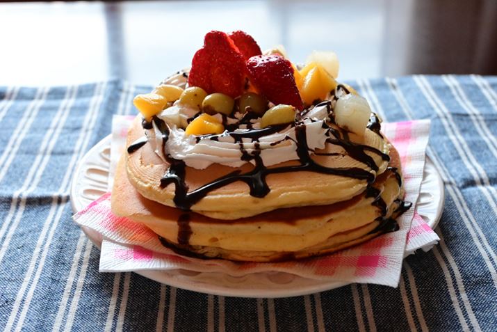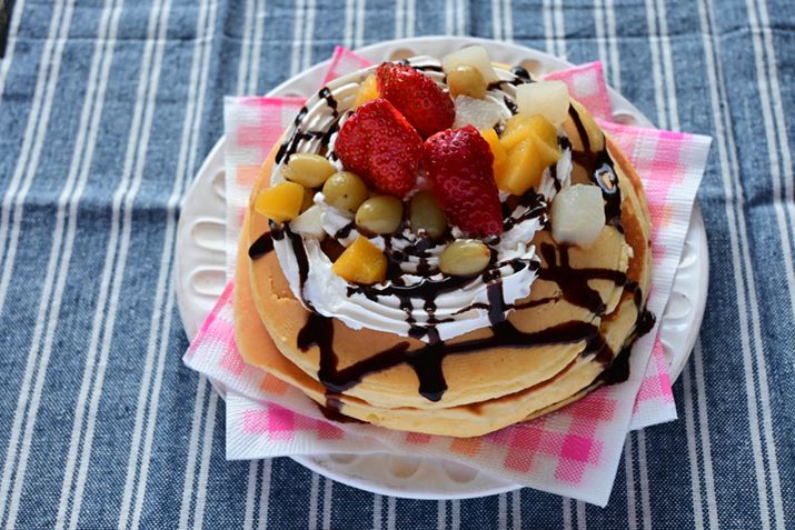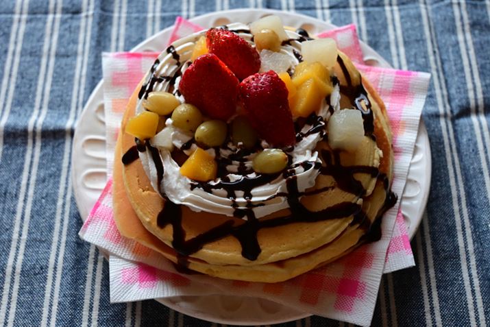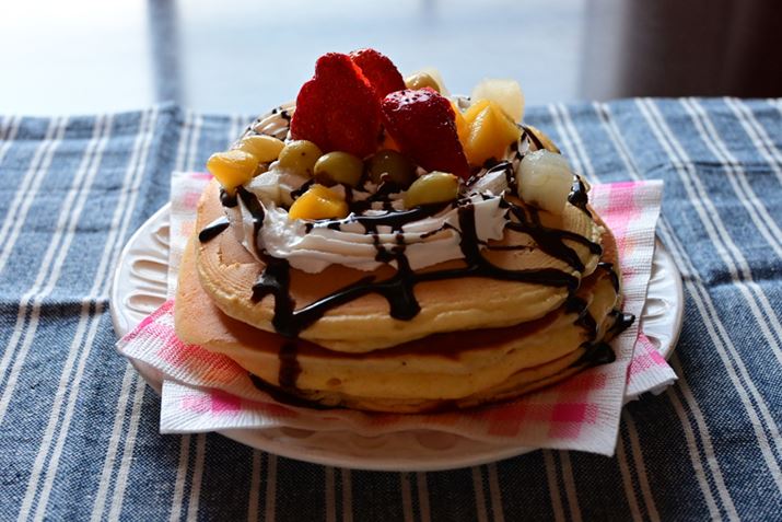 そのまま今度は絞りを開放にして撮影すると、一転して背景がぼけて、パンケーキだけに目がいくようになりました。