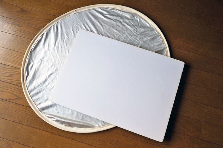 川野さんいわく、簡易的な銀レフは家庭用のアルミホイルを厚紙に貼り付けることで作れるそう。また白レフは、白い紙などを厚紙に貼り付けることですぐに作れるそうです。