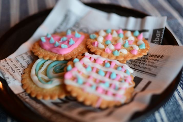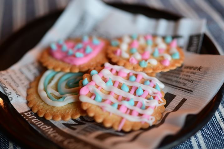 水色や白などアイシングチョコレートの色彩や質感が際立つようになり、あか抜けた印象になりました。
