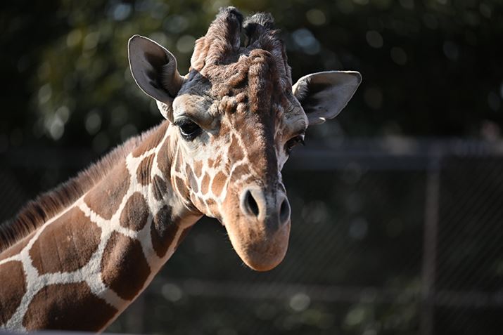 歩いているキリンをAF-Cで追従撮影した1枚。焦点距離200mmの開放F2.8で撮っているのでボケに口径食が見られるが、ピント位置(キリンの目)ではまつ毛の1本1本まで解像している。開放ながらコントラストが高いのも印象的だ。