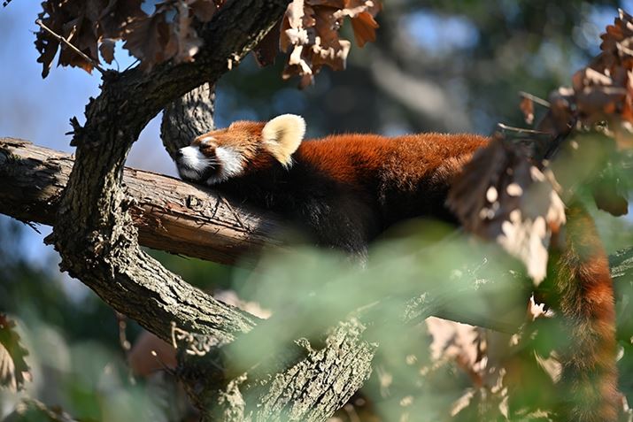 眠っているレッサーパンダを焦点距離200mmの開放F2.8で撮影。距離のある状況で撮っているが、細かい毛並みまで再現できている。