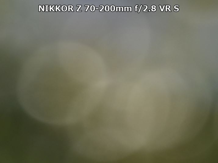 焦点距離70mmの近接で比較してみると、特に画像周辺の解像力でNIKKOR Z 70-200mm f/2.8 VR Sが上回る結果となった。NIKKOR Z 70-200mm f/2.8 VR Sは画像の隅ギリギリでも中央とほぼ変わらない、シャープな画質が得られる。また、ボケについてもNIKKOR Z 70-200mm f/2.8 VR Sのほうがわずかな差ではあるが上質な印象。ボケの形そのものは両者でほぼ変わりないが、NIKKOR Z 70-200mm f/2.8 VR Sは輪郭の色付きが少なく、すっきりとした描写になっている。