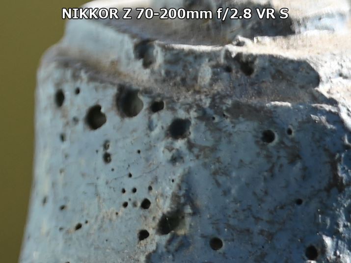 望遠端200mmの近接撮影も70mmと同じように、周辺の画質で違いが出た。両者とも70mmよりも描写が甘くなる印象で、ややソフトな感じになっているが、NIKKOR Z 70-200mm f/2.8 VR Sはピント位置ではシャープな描写が得られている。