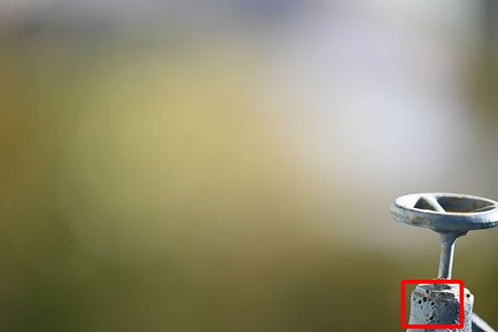 周辺に被写体を置いて、焦点距離200mm、AF-S NIKKOR 70-200mm f/2.8E FL ED VRの最短撮影距離(1.1m)付近で撮影。赤枠が切り出し部になる