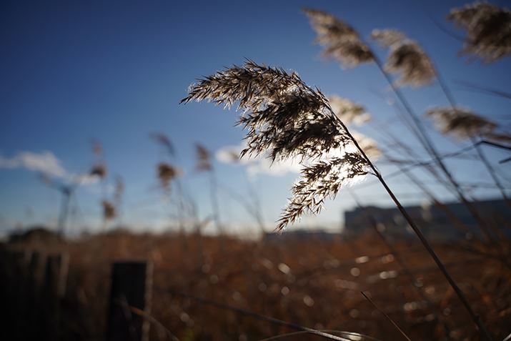 広角端24mmの開放F2.8で撮影。逆光の開放ということで色収差が出そうな状況だが、ピント位置はススキの毛の1本1本まで解像している。逆光下ということもあって周辺光量落ちがやや目立つものの、背景ボケは滑らかだ。