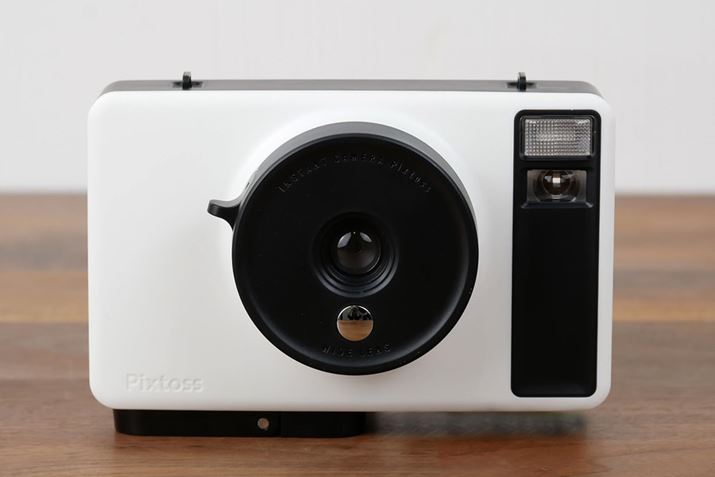 「Pixtoss」は、近距離撮影専用のインスタントトイカメラで、富士フイルムのインスタントカメラ「インスタックスミニ」(チェキ)用フィルムをセットし、レンズ横のシャッターレバーを押すことで撮影できる。シャッターを押したら、本体底面のハンドルをグルグルグル。こうすると本体側面からフィルムが排出される仕組みで、少しずつ像が浮かび上がり、約90秒で現像が完了する。