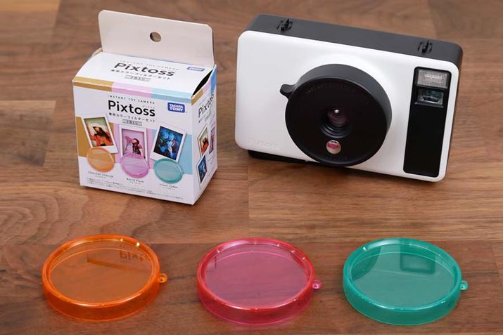 別売の「Pixtoss 専用カラーフィルターセット」(ショコラオレンジ、ベリーピンク、ミントグリーン)をレンズにかぶせれば、写真の雰囲気を変えることができ、さまざまなバリエーションの撮影が楽しめる