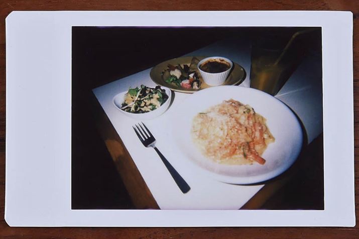 まずはレストランで料理を撮影。照明が点いた店内は決して暗くなかったのだが、フラッシュを使用しても周辺は暗く落ちている。料理の不鮮明な描写を含め、予想もしない仕上がりとなるのがおもしろい