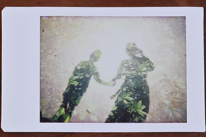 シャッターレバーを押した後、フィルムを排出せずにもう1度シャッターレバーを押すことで2枚の写真を重ねられる多重露光にも挑戦してみよう。地面に映った影を撮影し、フィルムを排出せずに植物を撮影。影のシルエットに植物が重なったアーティスティックな仕上がりに、思わず「お〜!」と感嘆の声が漏れた